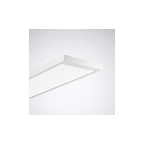 Plafonnier LED, à diffuseur en PMMA translucide. Luminaire à équipement multi-flux lumineux (multilumen) double. Pour montage au plafond dans des espaces intérieurs. Diffuseur en PMMA translucide aux liserets décoratifs à effet photométrique. À répartition symétrique intensive-extensive des intensités lumineuses Taux d'éblouissement selon classification UGR (EN 12464-1) < 19. Luminaire à flux lumineux assigné réglable 4000 lm - 5600 lm. Puissance assignée en fonction du flux lumineux réglé 38,00 W / 54,00 W. rendement lumineux du luminaire 105 lm/W. Teinte de lumière blanc chaud, température de couleur (CCT) 3000 K, indice général de rendu des couleurs (IRC) Ra > 80. Tolérance de localisation chromatique (initialement MacAdam) ≤ 5 SDCM, Durée de vie assignée moyenne L65(tq 25 °C) = 50.000 h. Corps de luminaire en aluminium. Surface au revêtement blanc (RAL 9016). Dimensions (L x l): 1502 mm x 300 mm, hauteur du luminaire 59 mm. Poids: 6,0 kg. Classe électrique (EN 61140) : I, indice de protection (norme EN 60529) : IP20, degré de résistance aux chocs selon la norme CEI 62262 : IK02, température d'essai au fil incandescent selon la norme CEI 60695-2-11 : 650 °C. Avec driver. L'unité d'exploitation peut être remplacée par un personnel compétent. Le produit répond aux exigences essentielles des directives européennes applicables et de la loi sur la sécurité des produits et porte le marquage CE. Le luminaire est en outre certifié ENEC par un organisme de contrôle indépendant.