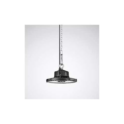 Armature industrielle LED pour montage suspendu. Pour montage suspendu individuel. Suspension à un point sur crochet à visser, intégré au centre. Accessoires de montage à commander séparément. Système optique avec optique à lentilles PC. Avec une unité optique par module LED.. À répartition intensive symétrique en rotation des intensités lumineuses. Flux lumineux du luminaire 30000 lm, puissance raccordée 230,00 W, rendement lumineux du luminaire 130 lm/W. Teinte de lumière blanc neutre, température de couleur (CCT) 4000 K, indice général de rendu des couleurs (IRC) Ra > 80. Tolérance de localisation chromatique (initialement MacAdam) ≤ 5 SDCM, Durée de vie assignée moyenne L65(tq 25 °C) = 50.000 h. La source lumineuse peut être remplacée par un personnel compétent. Corps du luminaire en fonte d'aluminium. Surface au revêtement noir (RAL 9005). Hauteur du luminaire 190 mm, Diamètre du luminaire 320 mm. Poids: 2,7 kg. Température ambiante admissible (ta): -20 °C - +40 °C. Classe électrique (EN 61140) : I, indice de protection (norme EN 60529) : IP65, degré de résistance aux chocs selon la norme CEI 62262 : IK08, température d'essai au fil incandescent selon la norme CEI 60695-2-11 : 650 °C. Le produit répond aux exigences essentielles des directives européennes applicables et de la loi sur la sécurité des produits et porte le marquage CE. Le luminaire est en outre certifié ENEC par un organisme de contrôle indépendant.