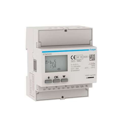 Hager | 3 Phase kWhmeter via CT 1A or 5A 4M MBUS MID - Ref : ECM300C