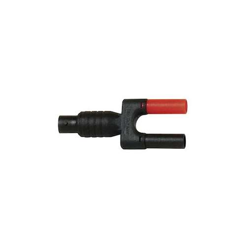 Jeu de 2 adaptateurs fiche BNC femelle isolée-Fiches males RD/BK isolées D4mm entraxe 19mm / 600V CAT III