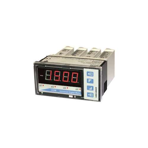 Gamme d'afficheur avec fonction contrôleur entièrement modulable en format DIN 48x96mm. De 3 digits et demi à 6 digits suivant modèle. Cette gamme est constituée d'une face avant recevant en partie arrière des modules de mesure, de sortie alarme relais ou collecteur ouvert ou série RS485/RS232 et d'alimentation. Point décimal programmable, Point de consigne réglable, jusqu'à 4 sorties relais et sortie analogique ou série. Protection par mot de passe, facteur d'échelle, fonction diagnostic. Plages de mesure, courant, tension, ohmmètre fréquencemètre, température. Alimentation 90 à 260VCA, 18 à 60VCA, 10 à 28VCC selon carte choisie.