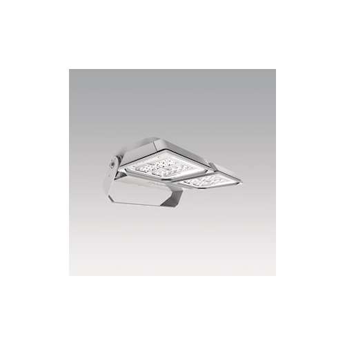 Projecteur compact et polyvalent pour l'éclairage de grands espaces. Taille Medium. convertisseur à LED configuré pour une réduction de puissance, fonctionnant 3 heures avant et 5 heures après le point milieu de la nuit calculé, alimentant 72 LED à 500mA avec distribution lumineuse asymétrique 40°. IP66, IK08, Classe électrique II. Corps : aluminium injecté, Gris pâle 150 sablé et texturé (similaire à RAL9006).. Fermeture : verre trempé de 4 mm d'épaisseur. Fourche réversible, accessoire pour montage en top. Driver programmé pour délivrer un flux lumineux constant. Livré avec LED 4 000 K.