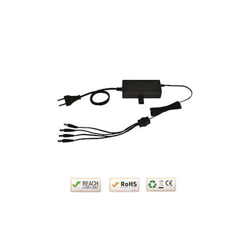 Alimentation PST bloc table, 4 voies, 230V AC / 12V DC / 3A Câble 1,5m avec fiche DC, voyant d'état sortie DC OK, triple protection en sortie (court-circuit / surcharge / surtension)