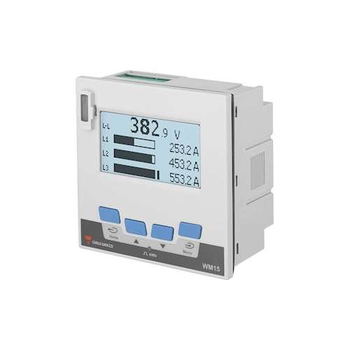 WM15 est un analyseur de puissance pour systèmes mono-, bi- et triphasés. Selon le modèle, le WM15 est équipé d'une sortie statique (impulsion ou alarme) ou d'une sortie statique associée à un port de communication Modbus RTU. La version auto-alimentée peut être installée sur des systèmes jusqu'à 415 V L-L (400 V L-L pour les modèles MID), tandis que la version avec alimentation auxiliaire peut être installée sur des systèmes jusqu'à 600 V L-L. En association avec le VMUBM2US1B1C, les données collectées peuvent être transmises via M-Bus.