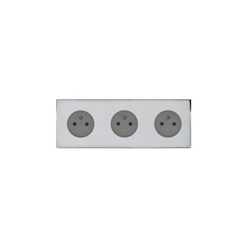 Triple prise 2P+T Surface gris magnésium 16A - 250V Art d'Arnould Univers Epure Acier miroir Dimensions grand carrée triple 80x222mm