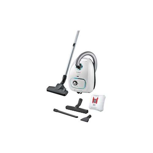 BOSCH - GL60 - aspirateur avec sac - blanc avec liseret bleu - variateur de puissance à la poignée - brossette multi-usage intégrée - 66 dB - ULPA - 12m - 4,5 L sac - brosse universelle - acc. 2 en 1 - sac à poussières classique