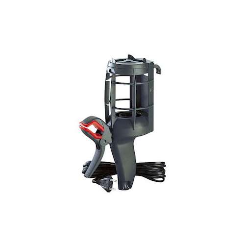 Baladeuse domestique IP20 230V 75W à panier plastique avec ouverture d'accès à la lampe avec fiche 2P, pince orientable, culot E27 et cordon longueur 5m - livrée dans emballage brochable avec Gencod