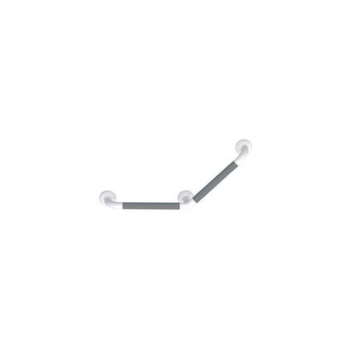 Barre d'appui 135DEG 362x335 mm, profil aluminium revêtu gaine PVC et barrettes de préhension grises, D= 33 mm. Coude en polyamide injecté blanc (nylon), platine et cache-fixations en polymère. Visserie fournie.