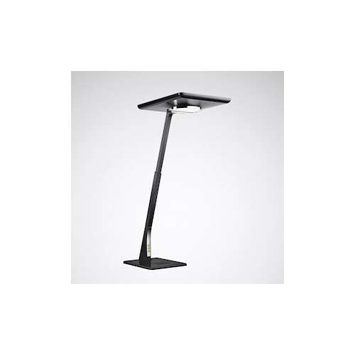 Luminaire de bureau innovant à composante directe pour l'éclairage individuel des postes de travail et à composante indirecte pour l'éclairage intérieur général. Luminaire avec équipement Active pour la commande de la température de couleur au moyen d'un dispositif de commande séparé. À gestion d'éclairage intégré pour la commande synchrone de la température de couleur en fonction de l'heure et de la saison (commande circadienne) aux deux niveaux de sortie de lumière. La fonction d'éclairage se commande manuellement via 3 éléments de commande ainsi que via l'application smartphone. Convenant notamment à l'équipement d'environnements de bureaux modernes, et particulièrement à des applications en open space et à des zones de communication ouvertes, en luminaire de bureau pour tous les types de tables de bureau, de conférence et de travail, fixes et réglables en hauteur. Pour un éclairage orienté sur les exigences, conformément aux réglementations en santé et sécurité au travail, convenant aussi à des applications pour le poste de travail à domicile. Convenant également à des zones de travail à faible apport de lumière du jour. Système anti-éblouissement triple (TGCS®) pour une composante indirecte à éblouissement réduit, à répartition symétrique et au faisceau d'éclairage limité. À vitre de fermeture en verre acrylique clair, très résistant aux rayures. Composante directe à répartition asymétrique extensive des intensités lumineuses et à direction de faisceau réglable pour une focalisation optimale de la lumière au poste de travail. À vitre de fermeture CDP. Les indications suivantes relatives au flux lumineux du luminaire et à la puissance raccordée du système valent pour un fonctionnement de ce luminaire à une température de couleur au réglage dynamique (HCL) et fonctionnant à une température de couleur blanc chaud (2 700 K). Flux lumineux du luminaire 5580 lm, puissance raccordée 56,00 W, rendement lumineux du luminaire 99 lm/W. Répartition du flux lumineux du luminaire, composante indirecte/directe 90% / 10 %. Teinte de lumière variable (blanc chaud - blanc lumière du jour), température de couleur (CCT) variable (2 700 K - 6 000 K), indice général de rendu des couleurs (IRC) Ra > 80. Tolérance de localisation chromatique (initialement MacAdam) ≤ 3 SDCM, Durée de vie assignée moyenne L80(tq 25 °C) = 50.000 h. Corps de luminaire en aluminium moulé sous pression. Surface satinée au laquage par poudre, noir (RAL 9005). Éléments de commande chromés. Dimensions de la tête de luminaire 320 mm x 240 mm, Dimensions du pied de luminaire 240 mm x 180 mm, Hauteur du luminaire (réglable en continu) 500 mm - 650 mm. Poids: 4,2 kg. Classe électrique (EN 61140) : II, indice de protection (norme EN 60529) : IP20, degré de résistance aux chocs selon la norme CEI 62262 : IK02, température d'essai au fil incandescent selon la norme CEI 60695-2-11 : 650 °C. Bloc secteur avec câble d'alimentation (3000 mm). Avec prise européenne (Typ C, EN 50075). L'unité d'exploitation peut être remplacée par un personnel compétent. Disposant d'une surface pour le chargement inductif, sans fil d'appareils de communication mobiles. Courant de chargement de 1 500 mA au maximum. Avec appareillage électronique, gradable (intégré). Le produit répond aux exigences essentielles des directives européennes applicables et de la loi sur la sécurité des produits et porte le marquage CE. Le luminaire dispose d'un capteur de lumière du jour/détecteur de présence HF intégré avec détection de la direction du mouvement. À gestion d'éclairage intégré pour la commande synchrone de la température de couleur en fonction de l'heure et de la saison (commande circadienne) aux deux niveaux de sortie de lumière. La communication entre le luminaire et le smartphone s'effectue via Bluetooth Low Energy v 5.0.