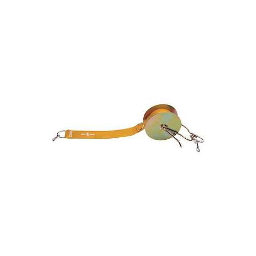 Ruban de délimitation en tissu sous enduction vinylique. Avec dé d'accrochage. Le ruban s'enroule sur le touret dévidoire. Couleur jaune. Ruban de rechange :