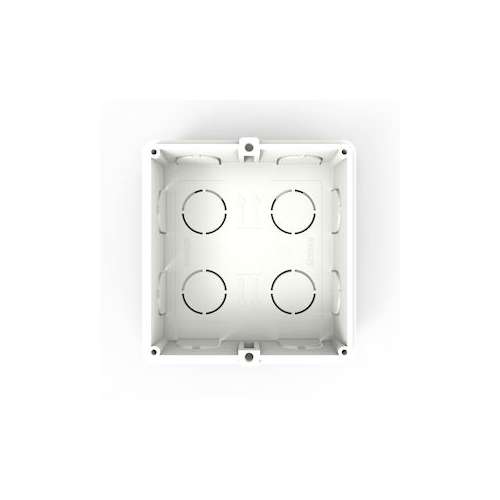 Boitier pour la pose en encastrement de postes externes MTM à 1 module. En plastique avec 2 joints passe-câble pour l'installation en batterie et trous préformés pour le passage des câbles.