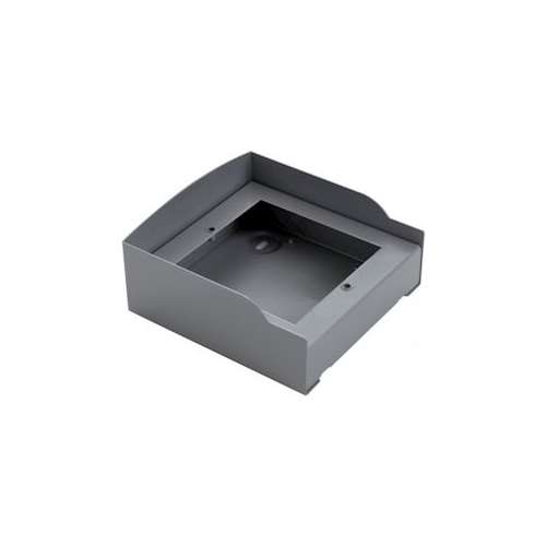 Boitier avec visière pour la pose en applique murale des postes externes MTM à 1 module vertical. En tôle d'acier peint, avec trous pour le passage des câbles et vis de fixation au mur.