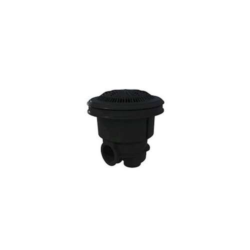 En ABS blanc. Sortie latérale 2" et sortie inférieure 11/2. Sortie inférieure fermée. Possibilité de montage d'un tube de drainage ( - Ref.. 43502)
