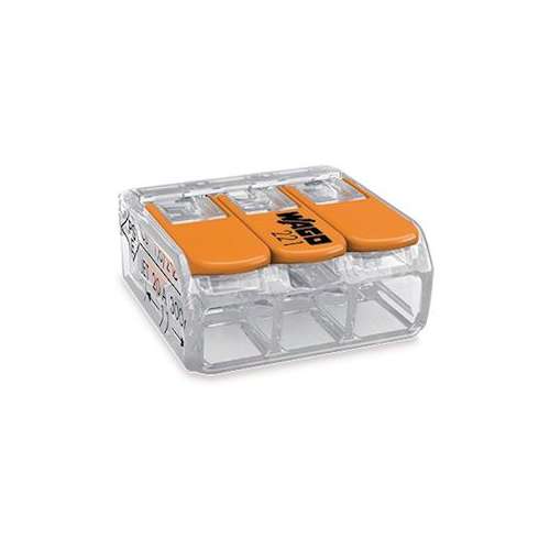 Borne WAGO 221 Mini 3x4mm² à leviers souple & rigide