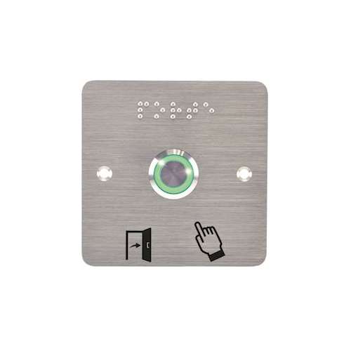 Les plus produits + •Gravure laser personnalisée sur demande Bouton poussoir acier inoxydable sur plaque carrée , Référence Cosses à souder , SS19G12CP201 - Caractéristiques : •Matériel : Acier inoxydable •Marquage plaque : Pictogrammes «Porte et Doigt» et «PORTE» en braille •Mode de fonctionnement : Impulsionnel •Contact(s) : NO + NF •Pouvoir de coupure max : 250 V AC / 2 A - 48 V DC / 1 A •Halo lumineux à LEDs : Vert •Tension d'alimentation LEDs : 12 V AC/DC (Autres tensions possibles sur demande : 6 V AC/DC, 24 V AC/DC, 48 V AC/DC...) •Consommation : 15 mA •Indice de protection IP : IP 65 (en face avant du bouton encastré) •Température de fonctionnement / Humidité Relative : -25° + 55° C / 45-85 % RH •Diamètre de perçage pour intégration : Bouton 19 mm (épaisseur du panneau d'intégration de 1 à 10 mm) / écrou 26 mm •Dimensions versions cosses à souder (L x h x p) : 80 x 80 x 34,6 mm •Poids brut / Poids net : 0,080 Kg / 0,078 Kg •Conditionnement par : 1 •Code douane / Code DEEE : 8536501199 / P12.01 •Code EAN 13 : 3760273111960 Accessoire en option : Boîtier applique en acier inoxydable pour série IRS / Référence : SSH200 Livré avec : •chevilles et vis de fixation pour le boîtier •vis antivandales et outil de montage pour la plaque / Dimensions : 82,5 x 82,5 x 38/42 mm