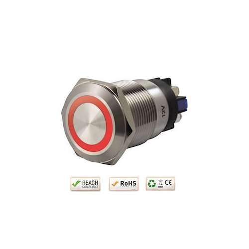 Bouton poussoir acier inox diam. 19 mm Halo rouge 24V DC Contact NO+NC (V)