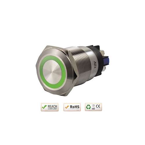 Bouton poussoir acier inox diam. 19 mm Halo vert 12V DC Contact NO+NC (V)