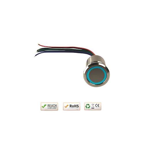 Bouton poussoir SS25PMR, acier inox, D= 25 mm, Halo bleu/vert/rouge, buzzer et Relais temporisé