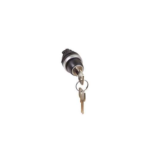 Bouton tournant non lumineux à clé N°455 noir IP69 Osmoz composable avec 2 positions fixes (0 à 12h) 45DEG équipé d'une bague de serrage - conforme à la norme IEC 60947-5-1