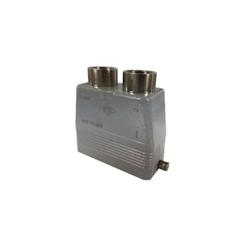Capot haut profil 2 pivots sortie verticale, 2 entrées câble PG21 - gabarit 104.27 - série CLASS