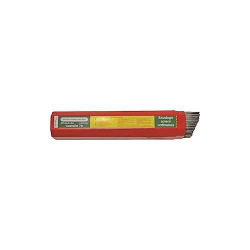 Electrode rutile pour l'assemblage des aciers ordinaires, usage general. Machinisme agricole, tuyauteries, cuves et reservoirs, travaux de serrurerie et d'entretien. Resistance a la traction : 550 N mm2 - Allongement : 25 % - Soudage en tpu