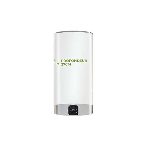 Chauffe-eau électrique mural plat Velis Evo - 80 Litres - Prof. 27 cm - Installation verticale ou horizontale - 15% d'économies d'énergie (fonction Eco Evo) - Témoin Shower Ready - Classe énergétique B
