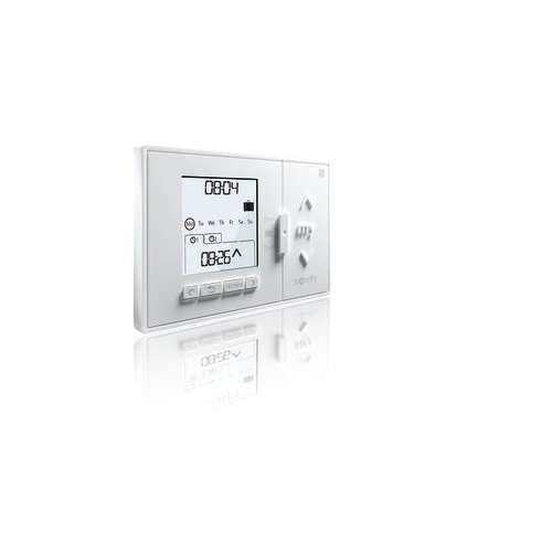 Chronis io est une horloge qui commande automatiquement ou manuellement un groupe de produits de la maison (volets roulants, brise soleil orientables et stores extérieurs...). solution radio io homecontrol 1 way. 4 ordres automatiques par jour. grand écran rétro éclairé pour une lecture aisée des informations affichées. bouton sélecteur de modes (automatique, manuel, aléatoire). fonctions : montée , descente, stop, position favorite "my". fonction crépusculaire pour fermer les équipements automatiquement à la tombée de la nuit. fonction copier / coller pour gagner du temps lors de vos programmations. mode horloge on : l'horloge est activée, la maison s'anime selon les horaires définis (4 plages horaires programmables par jour, 1 semaine programmable au jour le jour). mode aléatoire, simulation de présence : la maison s'anime de manière autonome grâce à la programmation horaire. mode manuel, horloge off, centralisation : l'horloge est désactivée et l'utilisateur reprend la main sur les équipements. pré programmation en usine. changement d'heure automatique été / hiver. indicateur de piles faibles. fournie avec support mural.
