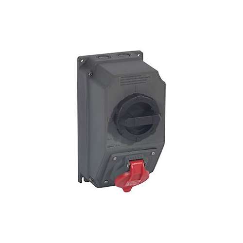 Coffrets Hypra IP 44 monoprise équipés- Plastique Coffret monoprise avec interrupteurSocle de prise 380 à 415 V~ - 16 A - 3P+T- Prise avec interrupteur cadenassable avec cadenas réf. 0 227 97
