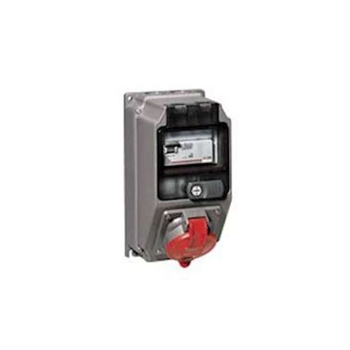 Coffrets Hypra IP 44 monoprise équipés- Plastique Coffret monoprise avec disjoncteur différentielSocle de prise 380 à 415 V~ - 16 A - 3P+T