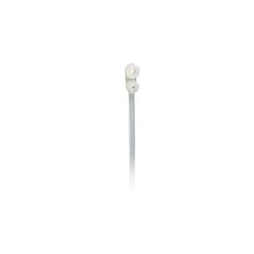 Attache de câble à trou de montage intégré, polyamide naturel (nylon 6,6) pour des températures jusqu'à 85 degrés Celsius (185 F) pour des applications intérieures, longueur de 198,88 mm (7,83 pouces), largeur de 4,83 mm (0,19 pouces), épaisseur de 1,4 mm ( 0,055 pouces), résistance à la traction de 222 newtons (50 livres), vis n ° 10 pour le montage