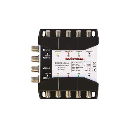 Evicom | Commutateur cascadable actif 5 câbles 4 sat. + terrestre, 4 sorties - Ref : SCSC5004A