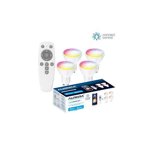 Aurora | Connect.control - Kit 4 x GU10 5W RGBCX + télécom. Bluetooth - Ref : AUA1BTGUCWK