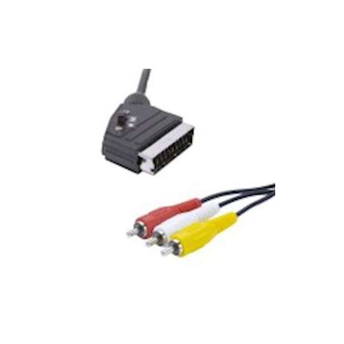 Cordon Péritel mâle / 3 RCA mâle - entrée et sortie commutable - 21 contacts - nickel - 1m50