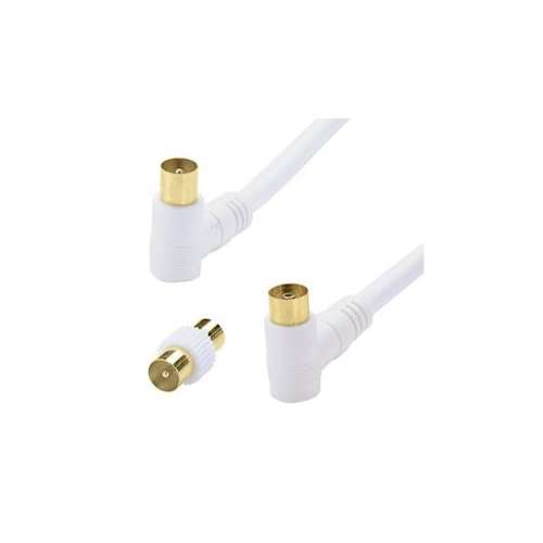 Cordon TV 9.52 mm M/F coudé à 90DEG + adaptateur TV 9.52 mm M/M - OR - 3m