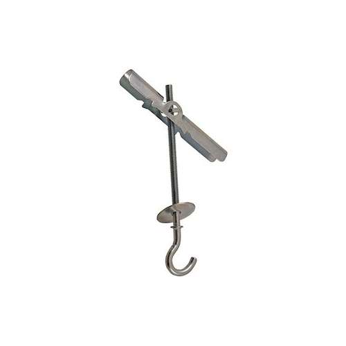 Crochet à bascule D= 6 x 125 mm acier zingué (x 10). Pour la suspension de charge légère dans les matériaux creux < 70 mm. Idéal pour le support d'éclairage au plafond. Longeur de bascule 125 mm. Insertion : bascule côté long vers le haut.