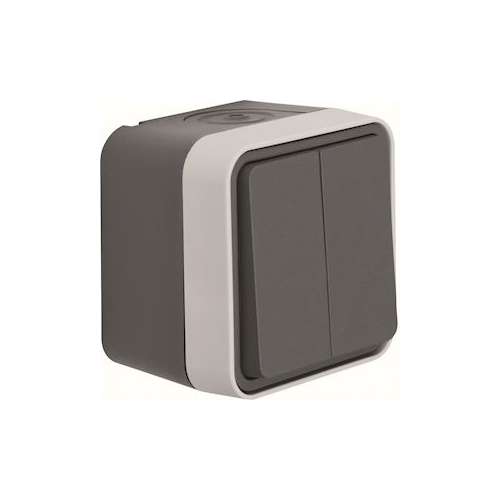 Hager | cubyko double va-et-vient saillie gris - Ref : WNC040