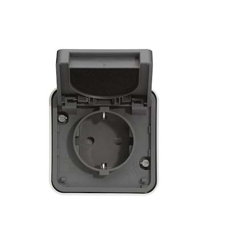 Hager | cubyko Prise Schuko saillie gris IP55 - Ref : WNC160