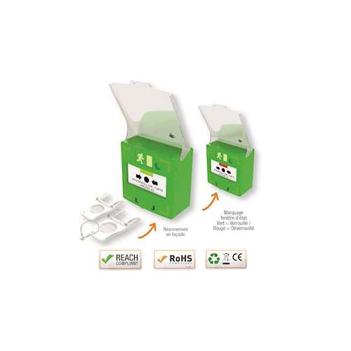 | Déclencheur manuel vert 1 contact Reset façade + capot, 2 clés, scellé - Ref : RCP100G