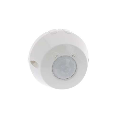 Détecteur de mouvement infrarouge 360° 3 fils avec neutre IP20 - Livré complet pour fixation au plafond Réglage manuel par potentiomètre du seuil de luminosité et de la temporisation : - seuil de luminosité : 10 lux à 1275 lux - temporisation réglable de 10 secondes à 10 minutes Allumage et extinction automatiques - Consommation 0,74W en veille - Portée 8m