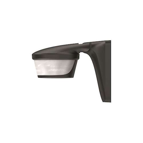 Détecteur de mouvement noir pour installation extérieur. Angle de détection 220DEG, Diamètre 32 m à 2.5m de haut. IP55. Contact sec 10A. Coupure lampe LED max 200W. temporisation 1 sec à 20 min.