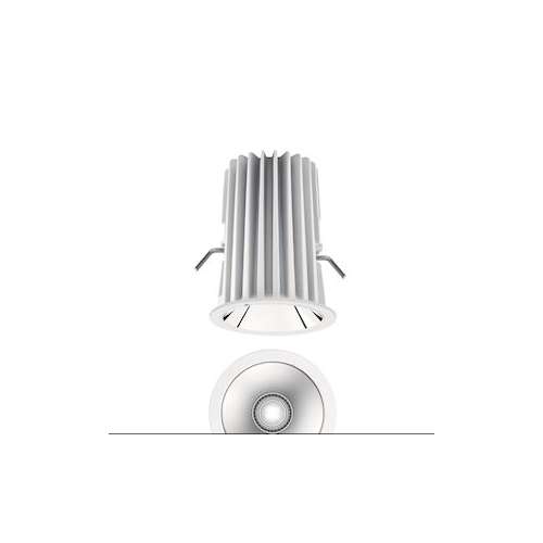 Plafonnier encastré à LED pour l'éclairage d'accentuation performant ; distribution précise sans lumière diffuse et excellent défilement ; lampe : LED1600-930, (47 °) Répartition photométrique VERY WIDEFLOOD ; réflecteur argenté, grand brillant ; Rendu des couleurs Ra > 90, température de couleur 3000 K (blanc chaud) ; Flux lumineux du luminaire: 1600 lm, Efficacité lumineuse du luminaire: 64 lm/W. Durée de vie : 50000 h avec une diminution du flux lumineux à 80 % ; avec ballast séparé Luminaire pilotable via DALI (via DALI uniquement) ; excellente brillance par réflecteur de conception spéciale en Aluminium extrapur, argent anodisé ; refroidissement passif intégré dans le corps du luminaire en fonte d'aluminium, collerette blanc ; luminaire à filerie exempte d'halogène ; raccordement : Bornier à 5 pôles à enfichage ; Puissance du luminaire: 25 W ; tension d'alimentation : 220-240V/ 0/50/60Hz. Montage par fixation à vis masquées pour des épaisseurs de plafond entre 1 et 25 mm ; découpe au plafond : Ø 68 mm, profondeur d'encastrement : 155 mm ; poids : 0,63 kg.