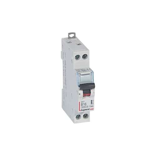 Disjoncteur DX³ unipolaire + neutre 230V~ pouvoir de coupure : - 6000A conforme à la norme NF EN 60891-1 - 230V~ pour les installations résidentielles- 10kA conforme à la norme EN 60947-2 - 230V~ Protection des départs : arrivée haute et sortie basse par bornes à vis Intensité nominale 16A - Courbe B (déclenchement magnétique 4In +/- 20%) - 1 module