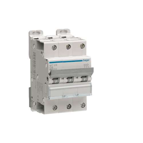 Disjoncteur 3P 6-10kA courbe C - 16A 3 modules | Hager - NFT316