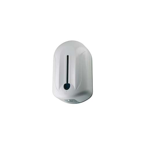 Dist.élec. savon liquide 107x140x235mm 1100 ml abs blanc fermeture à clé éteinte auto. à l'ouverture du capot débit 1ml/dose distribué par détec. auto. des mains par cellule infrarouge alim. 4 piles 1,5v non fournies.