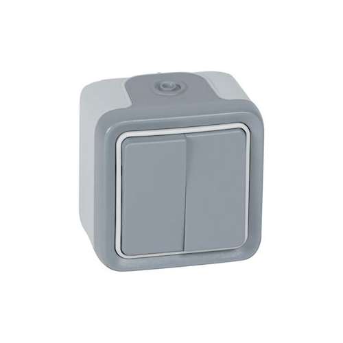 Double interrupteur ou va-et-vient étanche Plexo complet IP55 saillie - gris