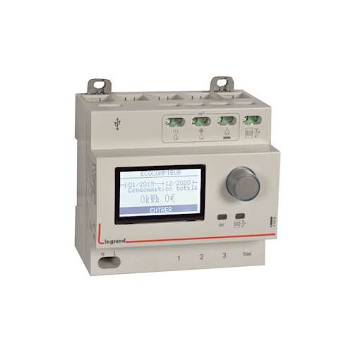Ecocompteur modulaire standard 230V~ pour mesure des consommations sur 4 postes mesure eau chaude, eau froide et gaz avec 1 entrée TIC - 5 modules