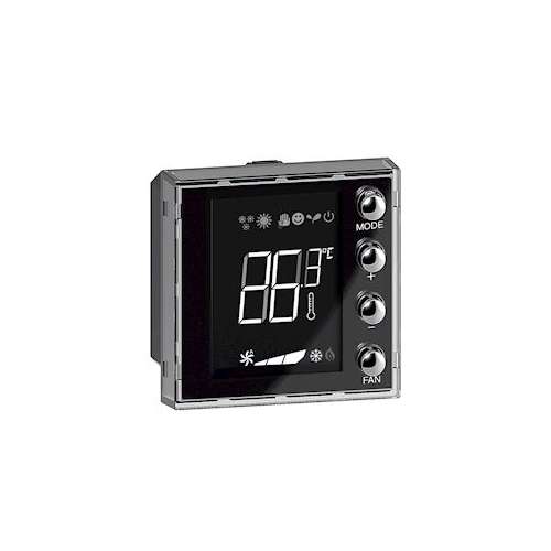 Ecran 1,6pouces Axolute BUS KNX pour contrôle de thermorégulation - À équiper d'un support et d'une plaque Axolute Avec 4 boutons-poussoirs en face avant et doté d'une sonde de température Permet de : - visualiser la température ambiante dans l'unité souhaitée- ajuster la consigne de température et/ou modifier la vitesse de ventilation- sélectionner le mode de fonctionnement (confort, protection)