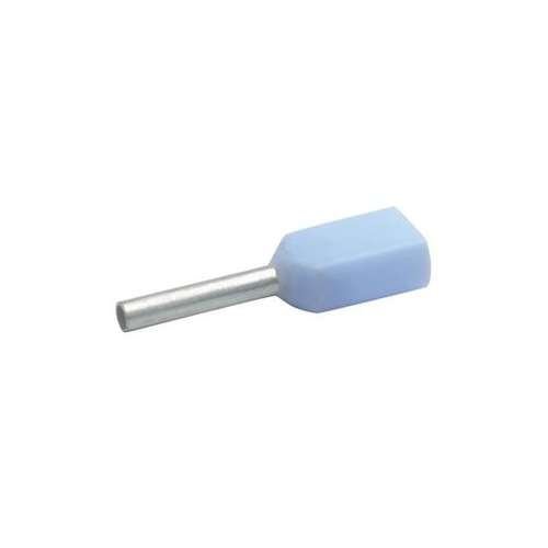 Embout de câblage pré-isolé bleu pour 2 conducteurs de section 0,75mm². Longueur 10mm. Isolant en polypropylène sans halogène de couleur noir. Température d'utilisation 105DEGC maxi en continu. Selon DIN 46228-4 et à la norme NFC 63-023