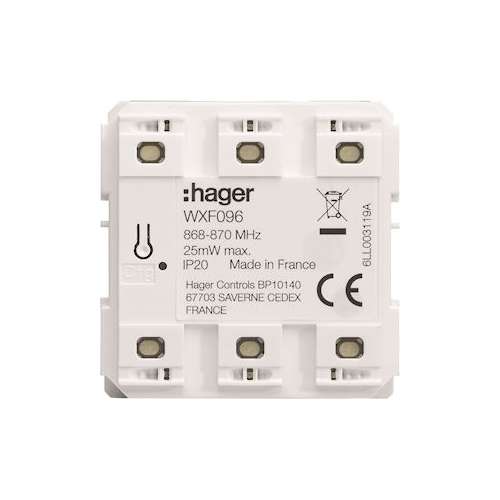 Emetteur radio mural, gallery, quicklink, plat, pile plate, 6 postes | Hager - WXF096