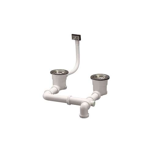 Equipement gain d'espace évier 2 cuves D=90 mm Siphonette, paniers inox D=83 mm, sortie D=40 horizontale, hauteur 124 mm, serrage 0/25 mm, 2 vis inox, débit 50 l/mn, Cleany Quick : nettoyage facile, prise machine, grilles ronde, rectangulai
